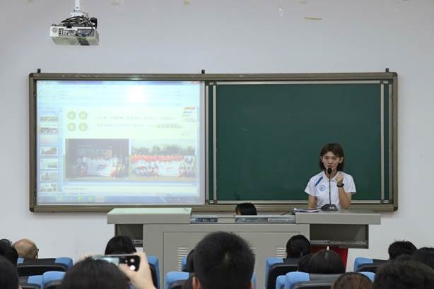 本网讯10月9日14点40分,我院2019年“携手奔小康,共筑中国梦”大学生暑期文化科技卫生“三下乡”社会实践活动报告会在图书馆三号报告厅举行。体育运动系党总支书记黄建新、体育保健与康复系党总支书记黄克铭、思想政治理论课教学部兰茹教授、体育产业系副主任朱达奇、院团委副书记吴笑慧出席了会议并担任比赛评委。三系团总支书记、思政部全体教师、院团委全体人员、各队指导老师、实践队全体队员,共100余人参加了报告会。